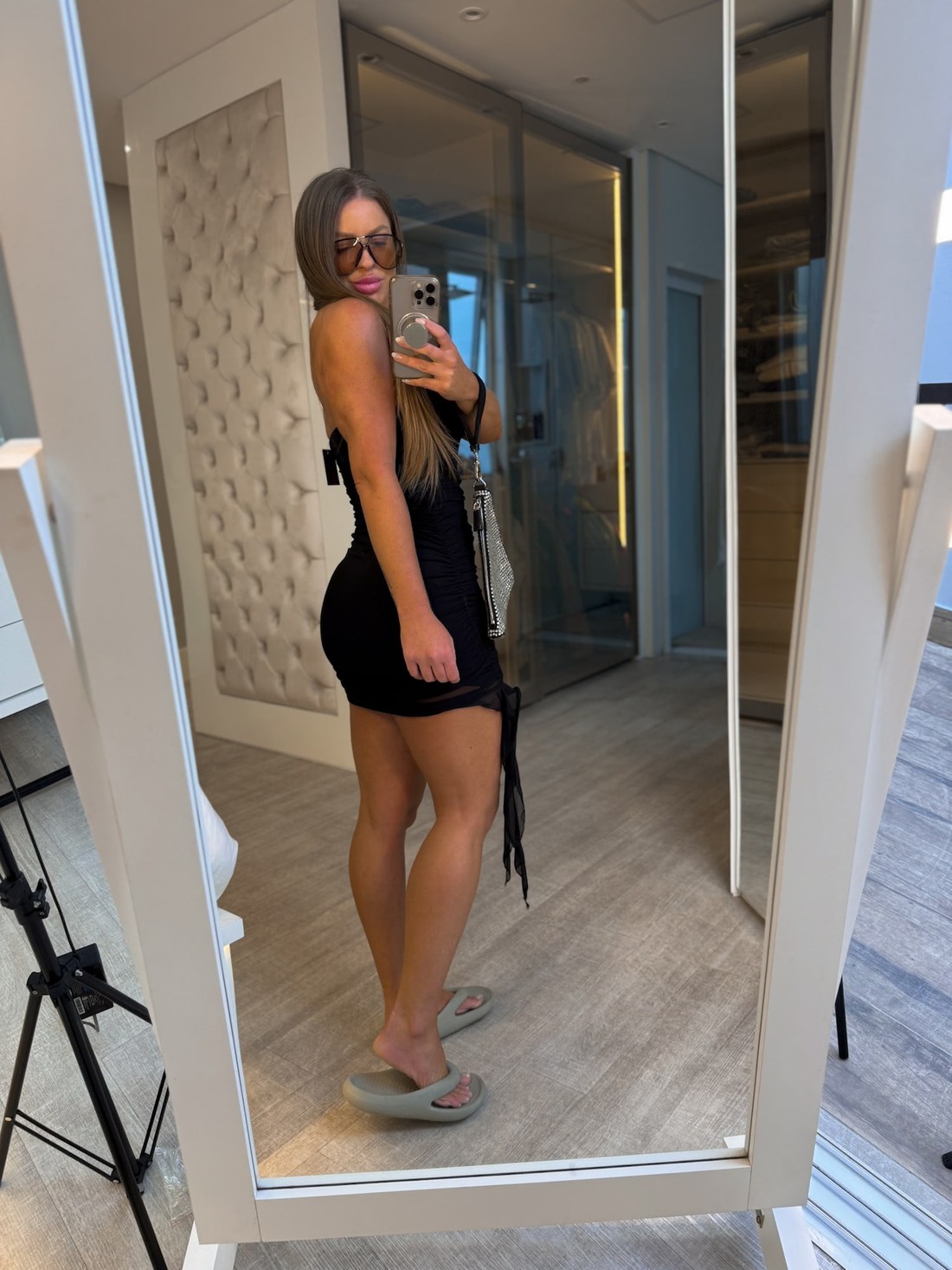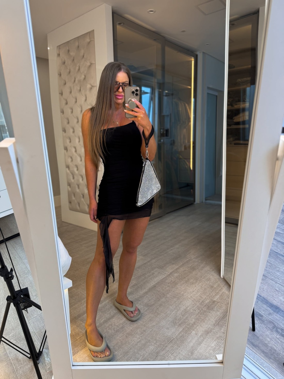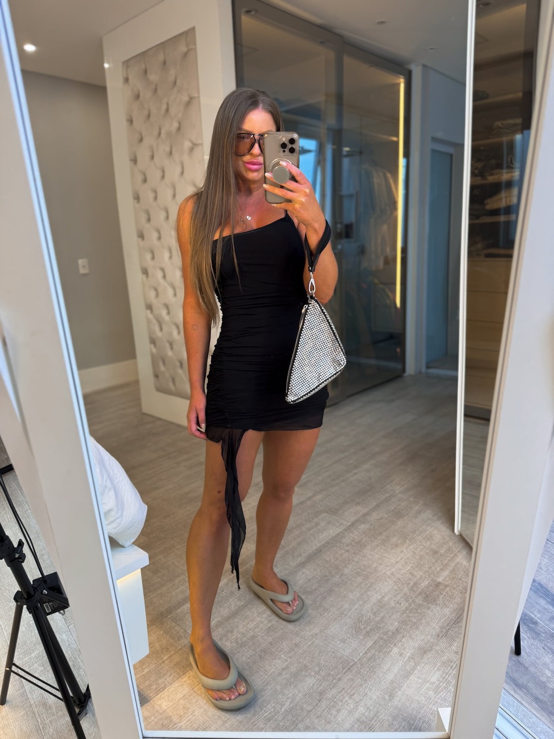Vestido curto em tule possui um ombro só com alça regulável e detalhes franzidos na lateral que dão ainda mais charme e estilo a peça.