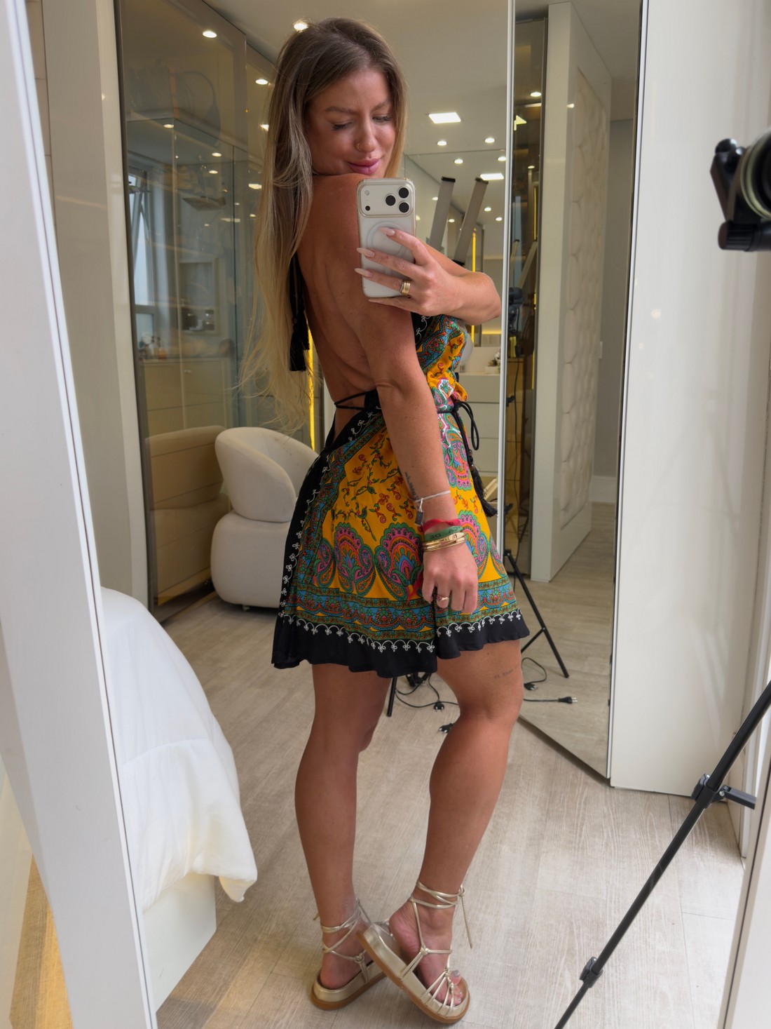 para os dias quentes. Tem decote profundo nas costas, cordão de ajuste nas costas e pescoço, o que vai deixar seu busto bem firme, e você bem segura. Um vestido feito todinho em viscose. veste do P ao G.