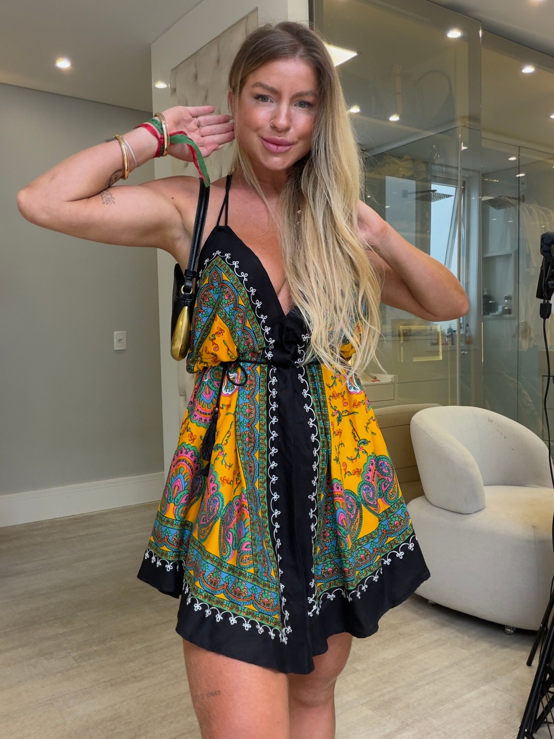 É peça chave para você quem curte a moda boho. com lindos bordados por todo o contorno da peça e estampa indiana. Uma peça muito confortável